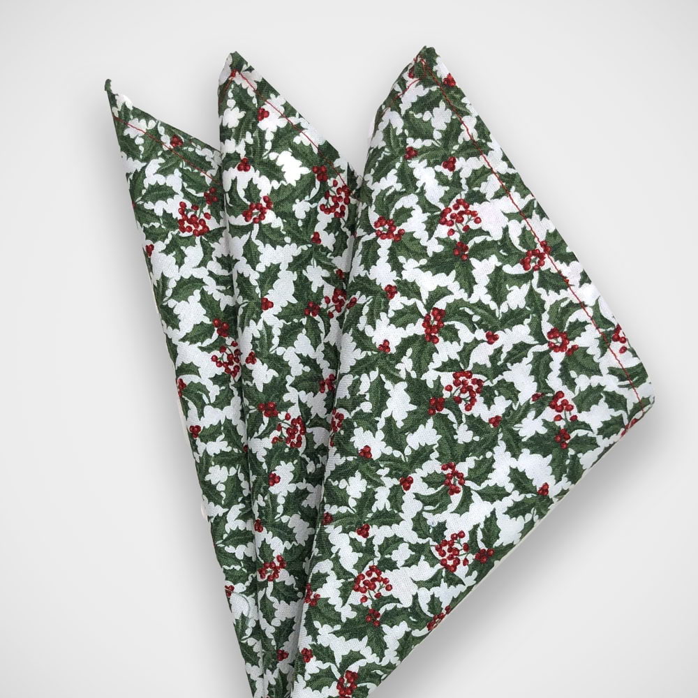 H. Halpern Esq. 'Mistletoe' Pocket Square. Decorate for Christmas with a festive pocket square. 100% Cotton. Made in Canada exclusively for H. Halpern Esq.